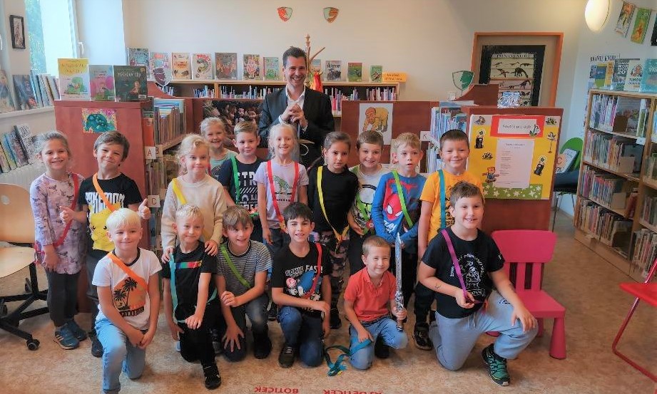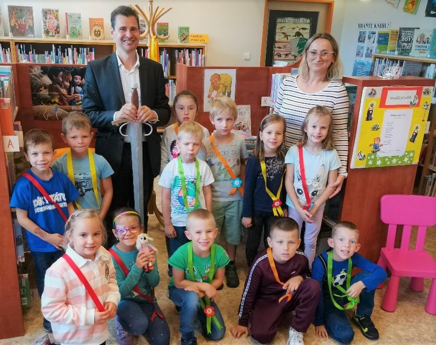 Dnes opět milá povinnost pasování prvňáčků na rytířky a rytíře knihovny, konkrétně pobočky KJM na nám. SNP v Černých Polích. Dvě třídy ze ZŠ Janouškova a jako obvykle došlo na otázky na tělo a podnětné diskuse. První otázka byla tentokrát na můj věk. Děti se divily, že už jsem tak starý, prý jsem mladší, než ve skutečnosti jsem. No, děti jsou upřímné, budu tomu tedy věřit. Po odlehčeném úvodu nastala vážnější část. Nejprve slavnostní slib adeptů na rytíře literatury a pak rituální přiložení meče na rameno. Všichni si to evidentně užili a věřme, že se do knihovny budou co nejčastěji vracet.