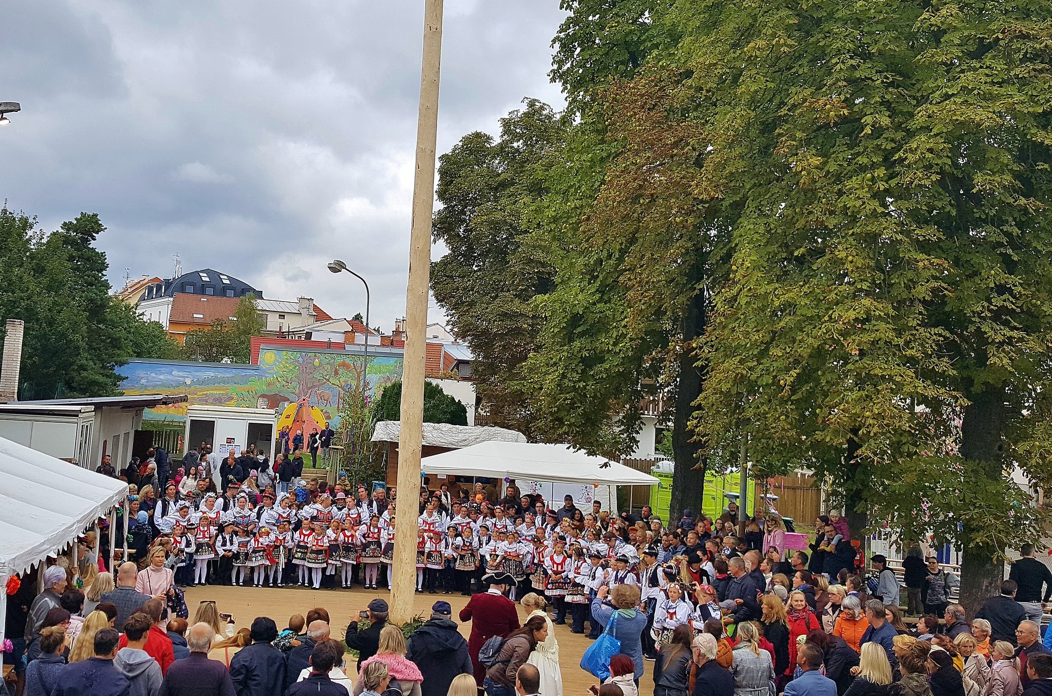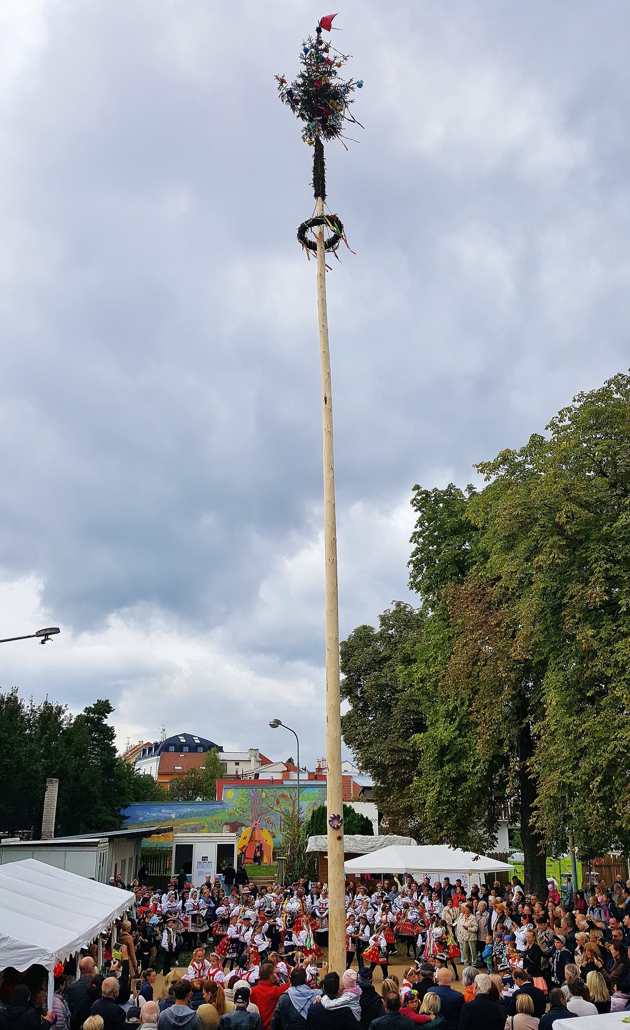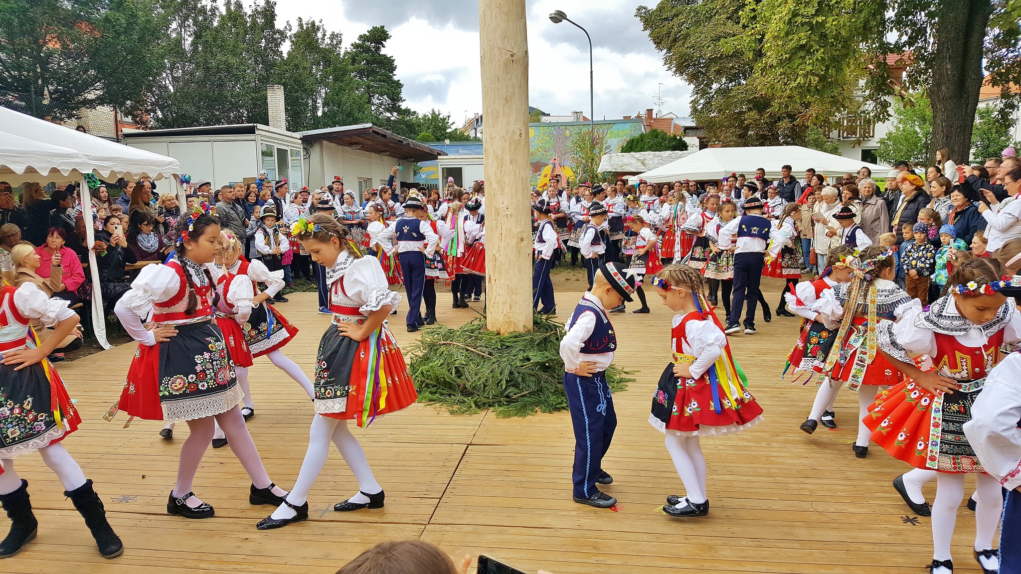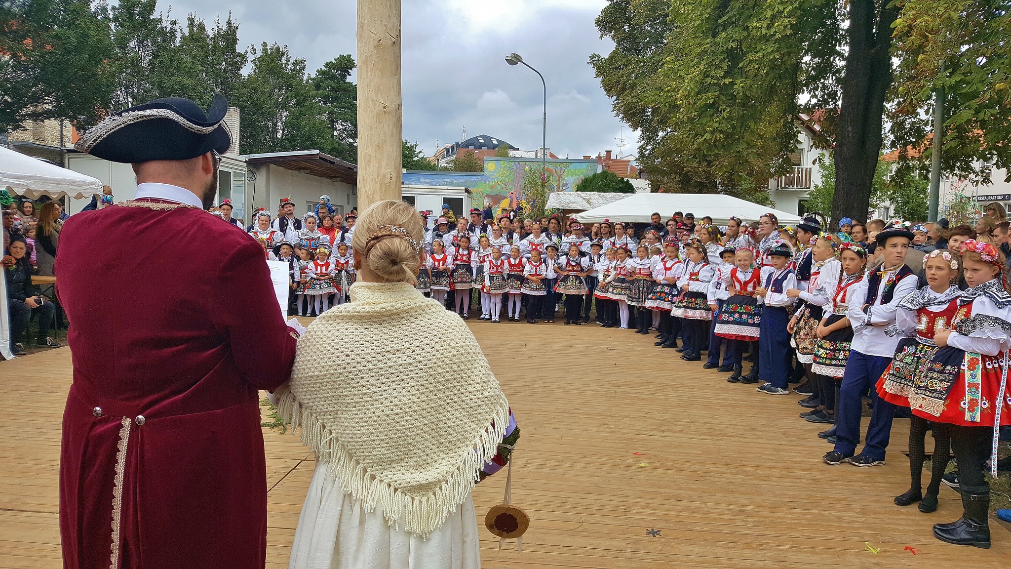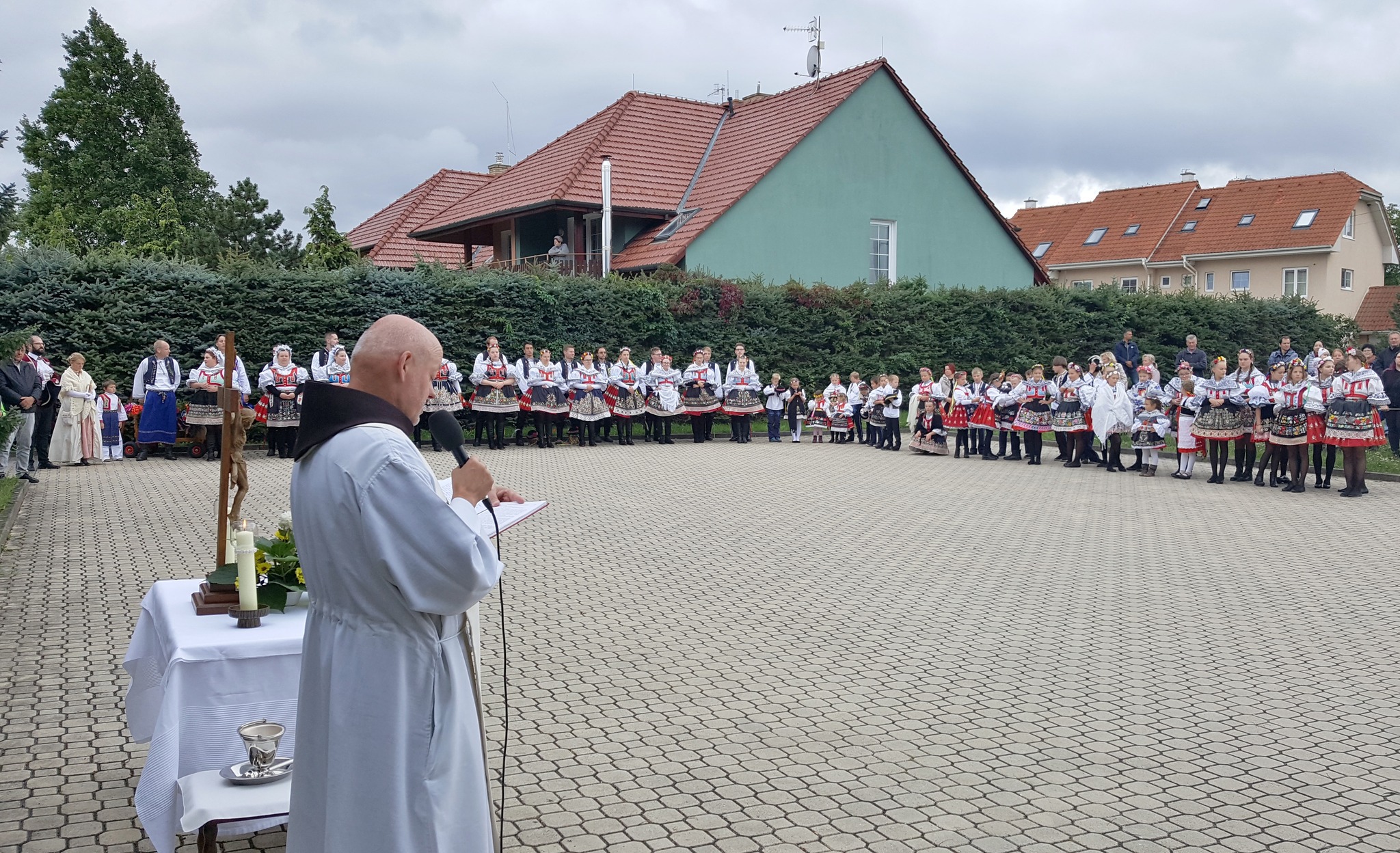 Odpoledne to ještě vypadalo nadějně, žehnání hodům proběhlo jako tradičně před klášterem sester klarisek a na sokolské zahradě bylo podle všech regulí uděleno hodové právo a na máju znamení toho pověšené. Krojovaná chasa se pustila do tance a veselí bylo v plném proudu. Ale temné mraky už byly na dohled a hodové veselí zchladily proudy deště. Škoda, hodový výbor odvedl opět mnoho práce, ale příroda letos hodům nepomáhá.